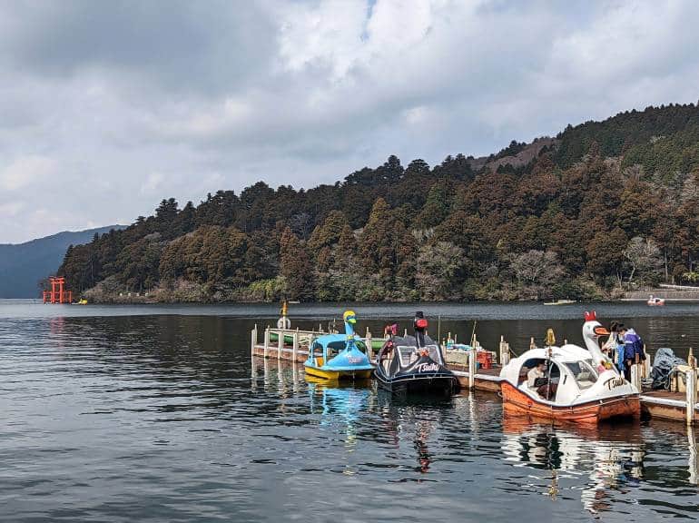 Along the shore of Lake Ashi, you’ll see plenty of people fishing, and paddleboats for hire. While this may be tempting, you probably won’t have time for it today. Instead, you should head straight to the dock for the pirate ship.