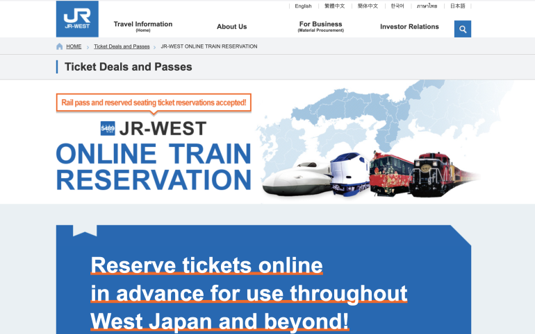 JR West may be famous for its Hello Kitty Shinkansen, which runs from Shin-Osaka to Hakata Station (in Fukuoka). But they also run a pretty easy-to-use and well-explained ticketing website. The interface is very similar to other websites listed, and they also include maps for a visual remedy.