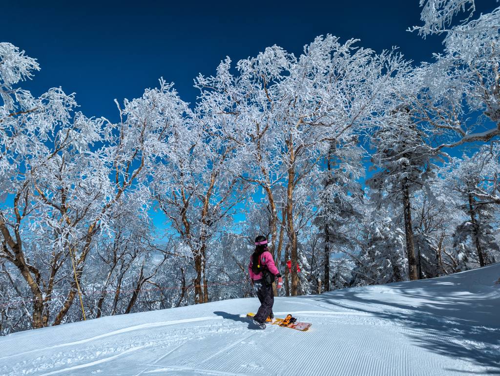 The resorts on Honshū (the main island where Tokyo is) tend to be less popular and less expensive than Hokkaidō, particularly during the week. So, if you’re flexible, keep an eye on the forecast and catch an empty mid-week slope on a clear, sunny day after some heavy snowfall.