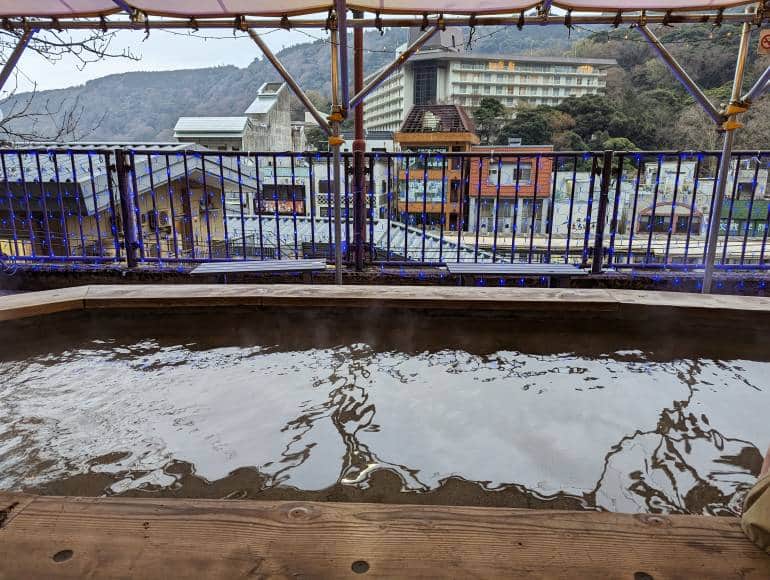 If you don’t feel like the full hot-spring experience, you can use the footbath instead. It uses an honor system, so just deposit the money in the silver post box attached to a pole. For adults, it’s ¥200 and for kids it’s ¥100.