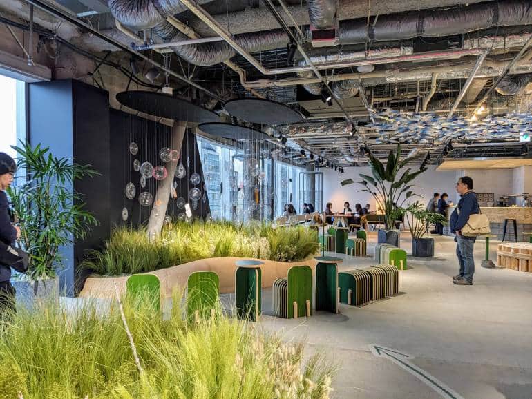 The fourth floor, called Harappa, is a free space for visitors to take a break and immerse themselves in Tokyo’s version of nature. The floor’s artworks, such as the striking bonfire installation, have been created to promote a sense of sustainability. Harappa has a brighter and fresher feel compared to the other floors, helping to further evoke that sense of being in nature.