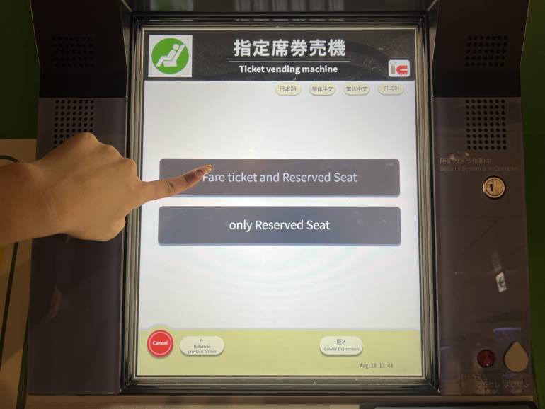 If you’ve bought a non-reserved ticket but have decided you’d like to upgrade to a reserved seat, then you’ll need to prove that you’ve already bought a Special (Limited) Express Ticket for that journey. This can be done at the ticket counter, but not at the ticket machine.