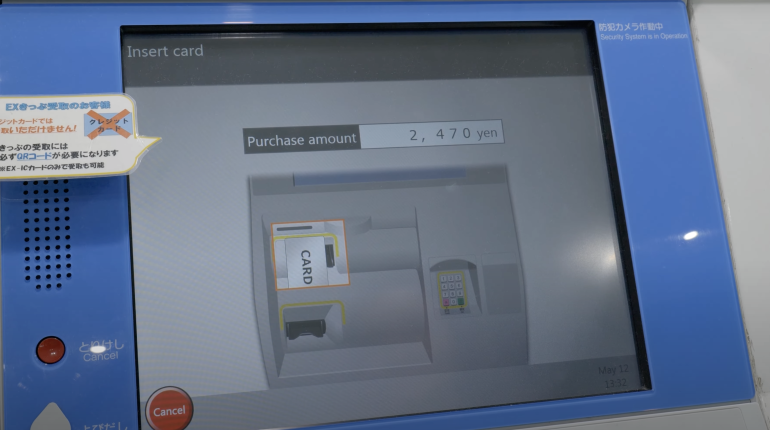 Once you have confirmed your options, the total amount will show up. You can either pay by cash or card. Keep in mind it is not possible to pay by Mobile Suica or the money loaded on your physical Suica card.