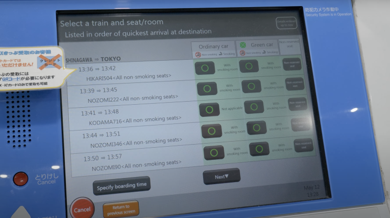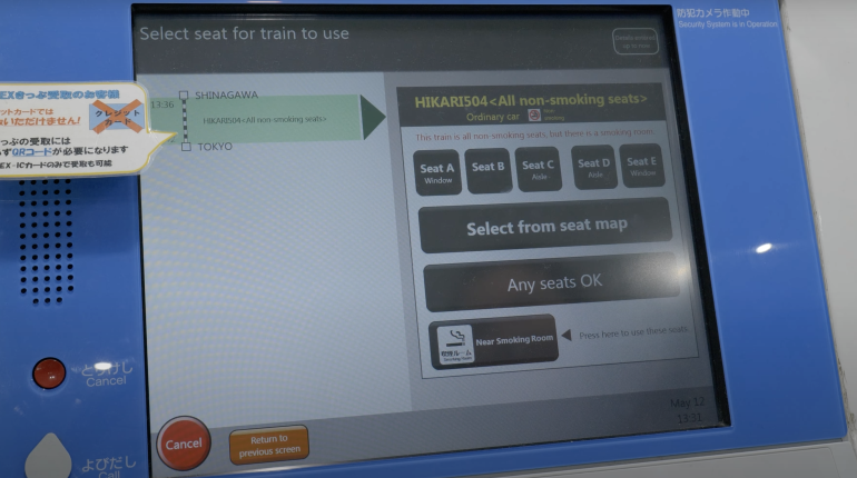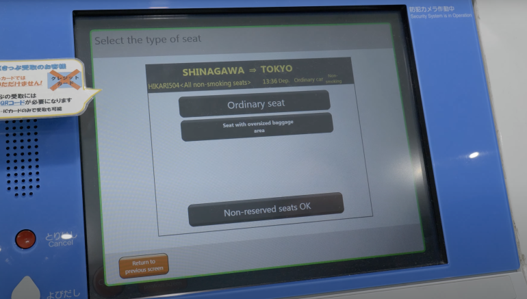 Which option should you pick? If you know where you’re going and what Shinkansen route travels to your destination, you can choose either “Reserved Seat” or “Non-Reserved Seat.”