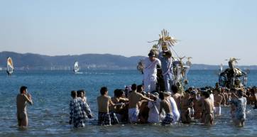 The Enoshima Tenno Festival features mikoshi (portable shrines) that are even dipped into the sea.