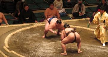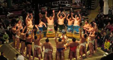 See this annual wrestling event that takes place at Ryōgoku Kokugikan (the sumo stadium) each year.
