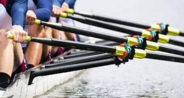 Watch Waseda University and Keio University face off in a rowing competition on the Sumida River.