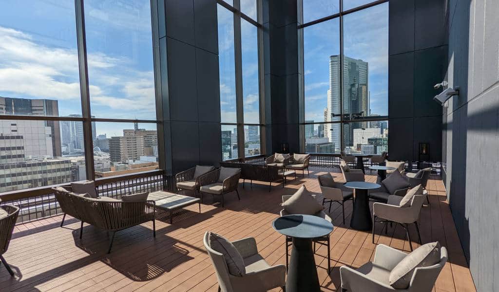 You can head up to the rooftop terrace in the day or evening to marvel at the floor-to-ceiling windows and open top. While the setup is very aesthetically pleasing, be warned that it can get pretty steamy during summer, and in winter it will be rather fresh. From spring to autumn, they do yoga lessons on weekend mornings for ¥1,000.